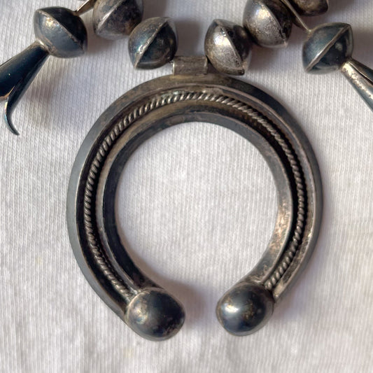 NAVAJO SILVER SQUASH BLOSSOM NAJA NECKLACE c.1950