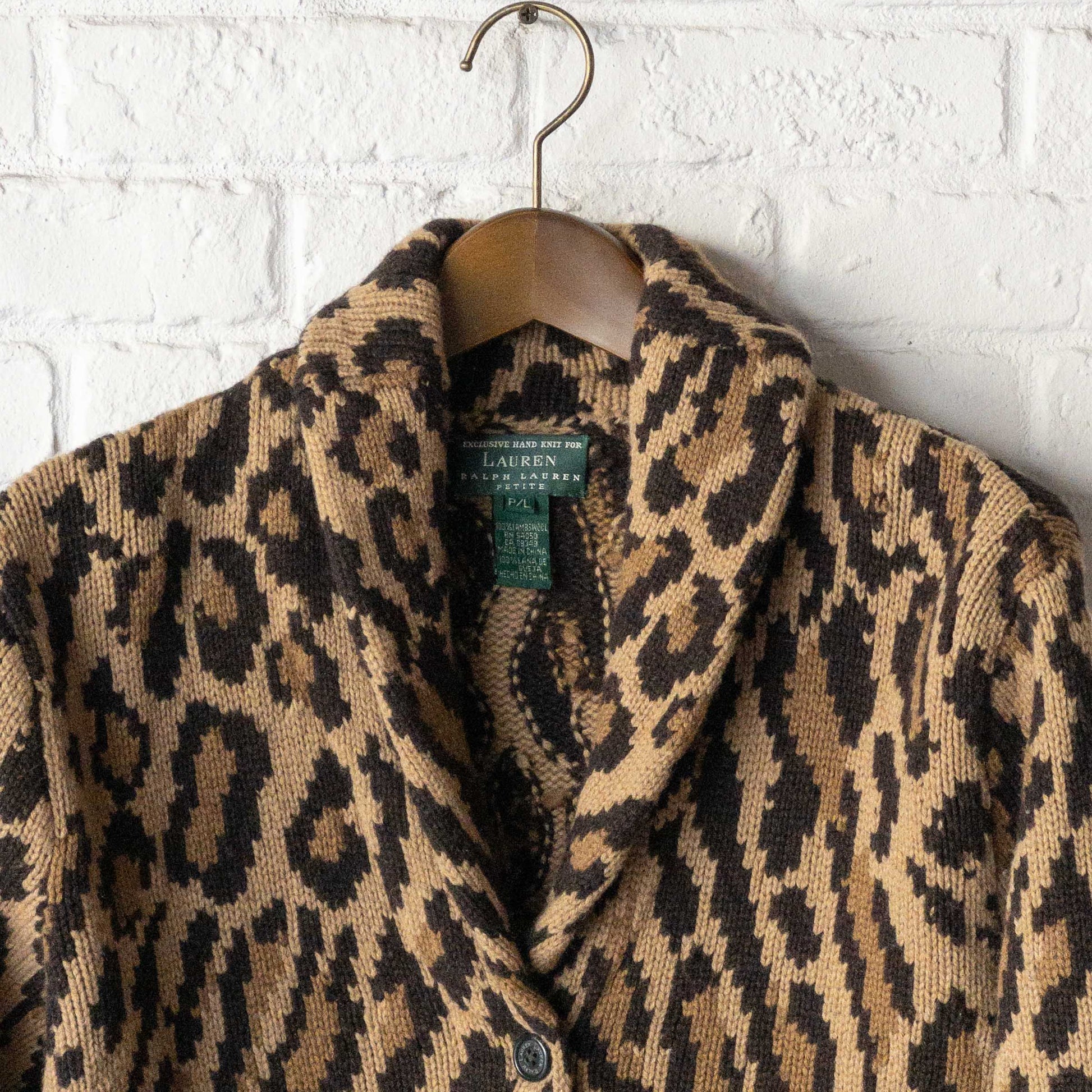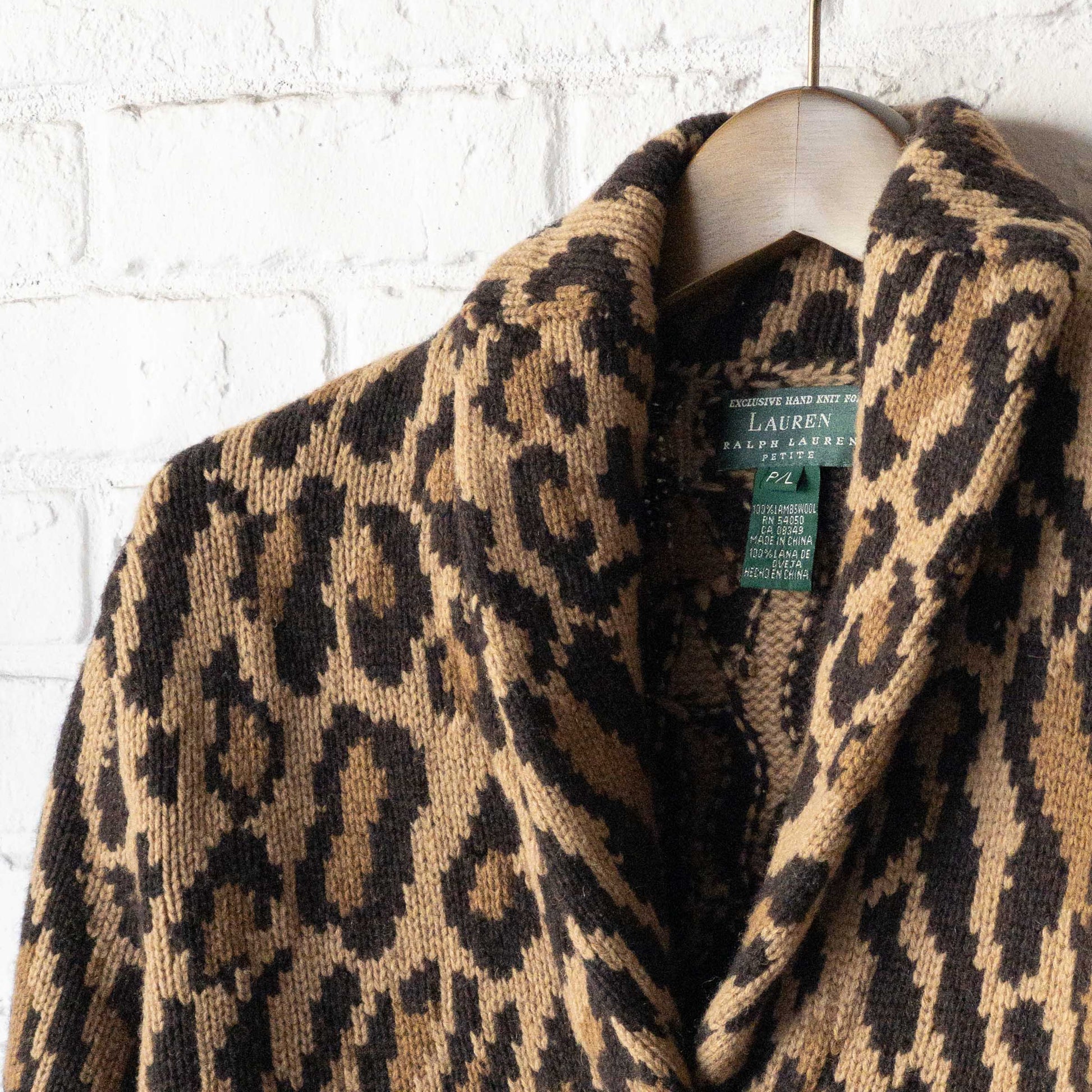 RALPH LAUREN KNIT LEOPARD SHAWL CARDIGAN 1990'S VINTAGE