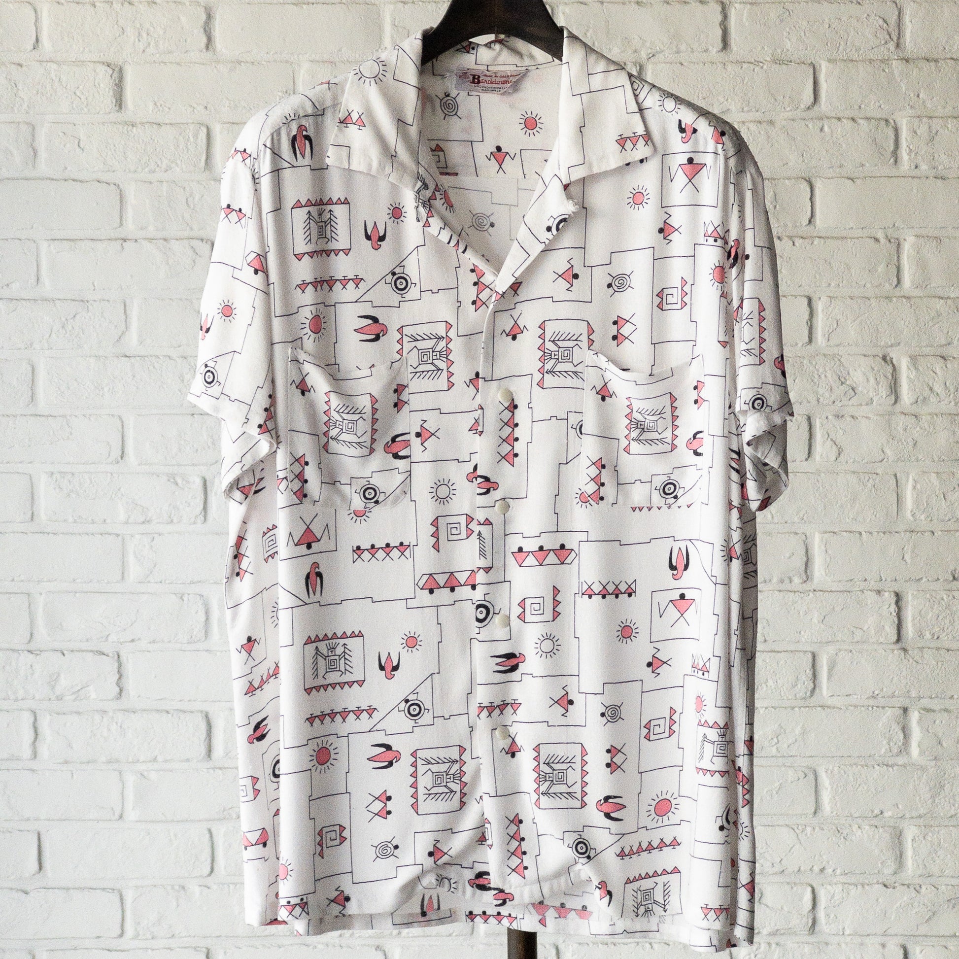 AMERICAN NATIVE PATERN RAYON SHORTSLEEVE SHIRTS 1950'S VINTAGE