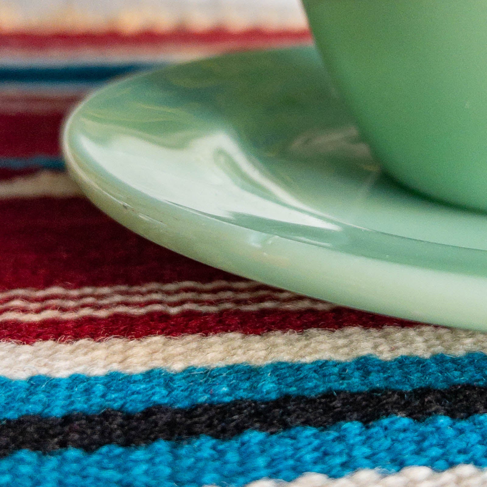 こちらのカップ・ソーサ―の裏面のゴシック体のGLASS刻印に「MADE IN USA」表記がないことから、最初期の1940年代~1950年代初頭のものと思われます。