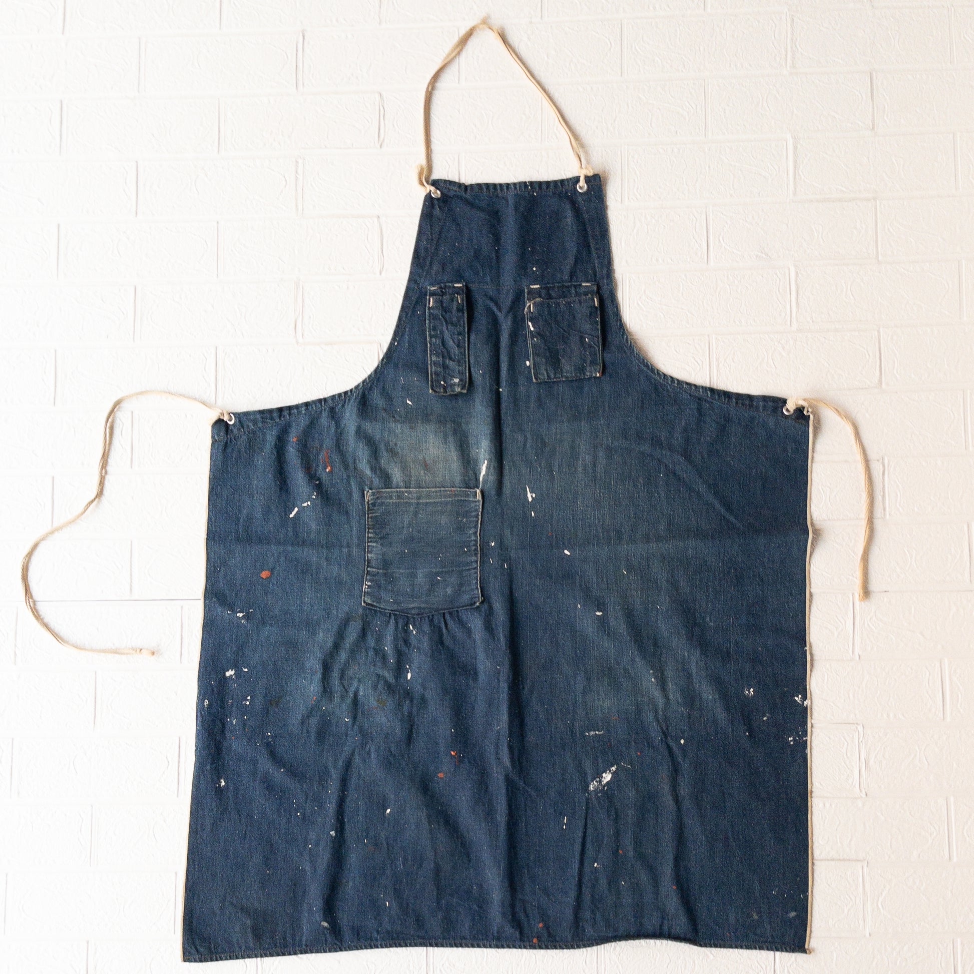 ユニークポケットでペンキの雰囲気抜群な古いエプロン。